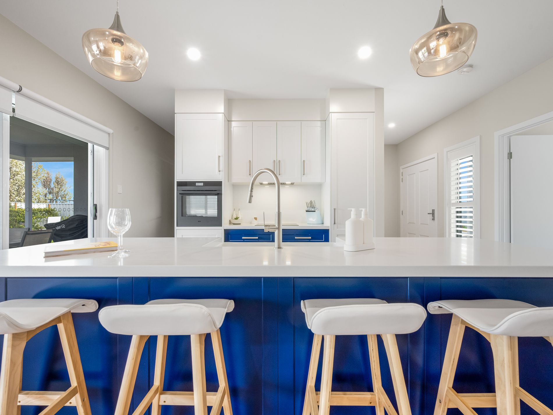 • Entertainer’s kitchen with Hampton’s style cabinetry, stone benchtops, electric cooking, Asko dishwasher and super-sized walk-in pantry