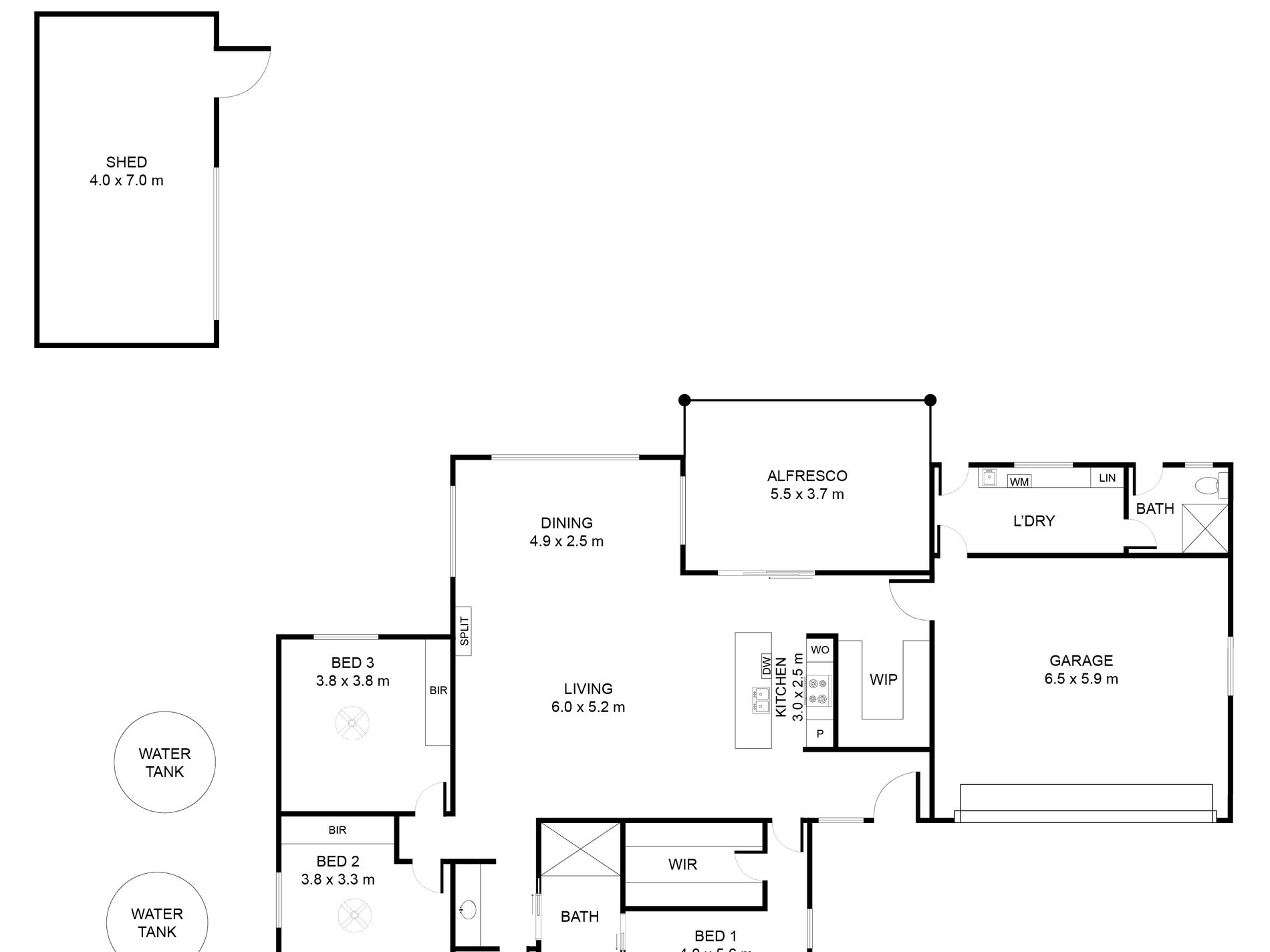 • 2 x 22,500 litre rainwater tanks as well as mains