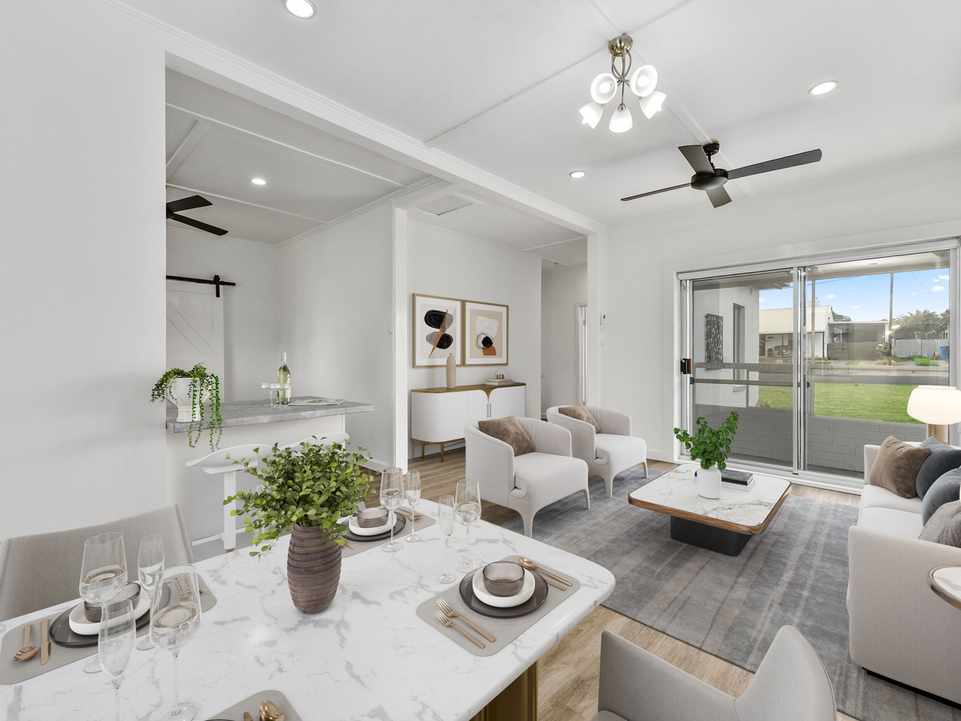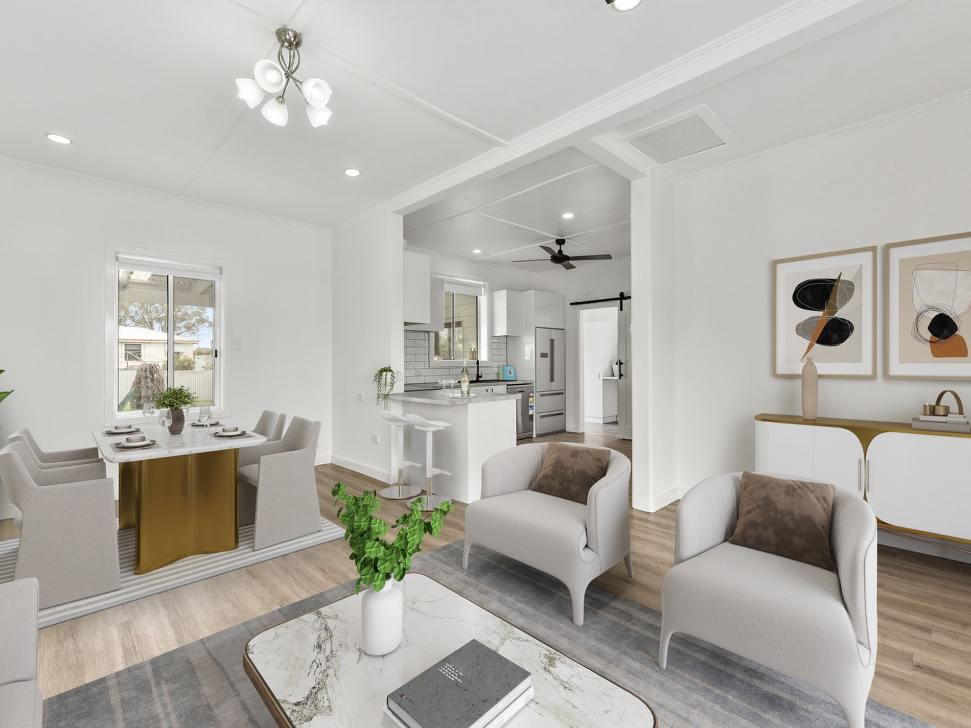 • Open plan kitchen/dine/living with split system heating/cooling