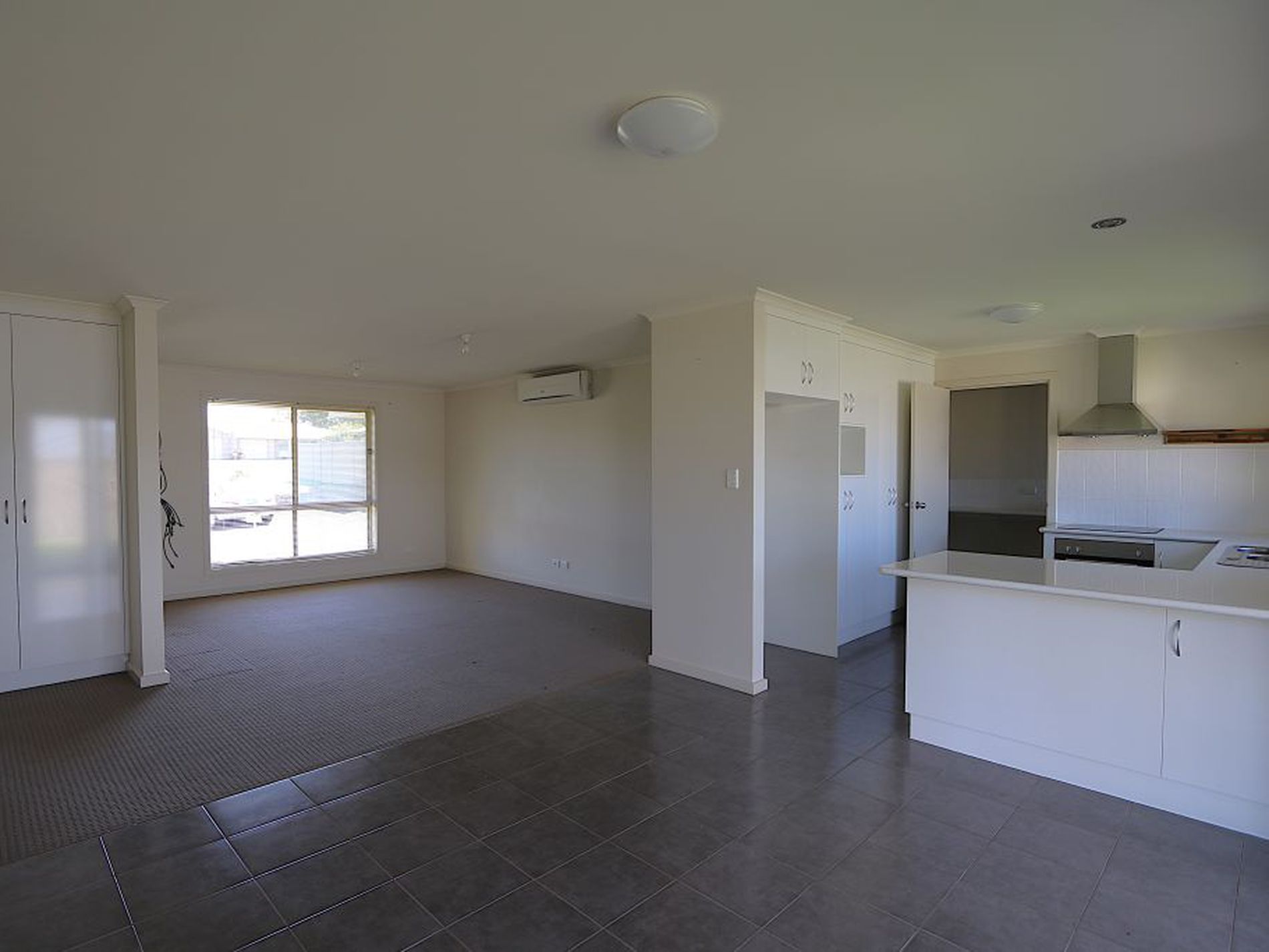 * Open plan kitchen, dining and living