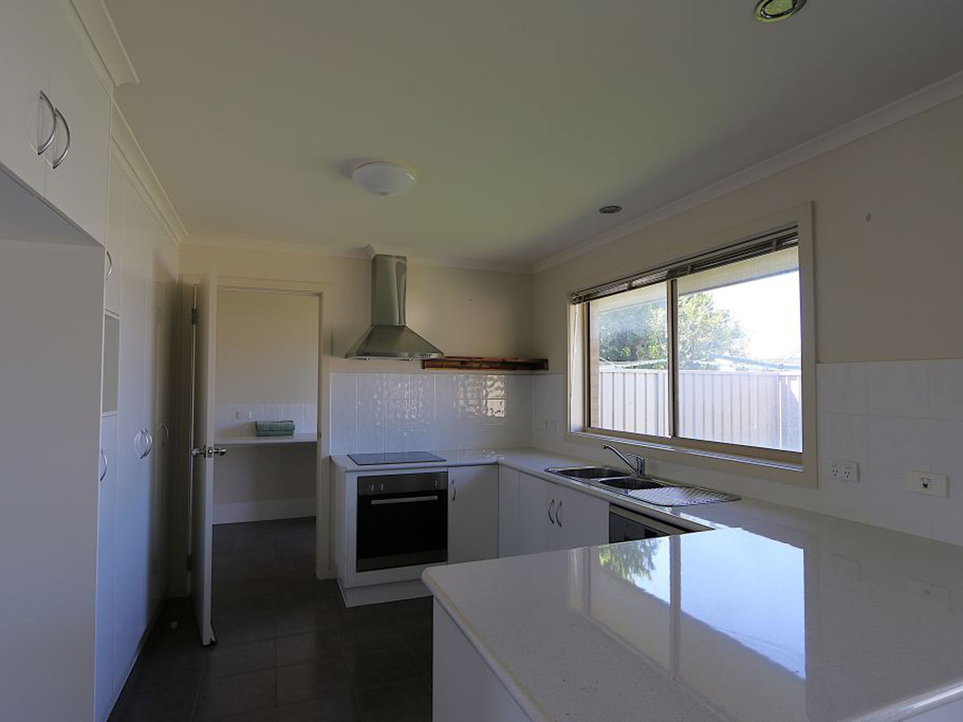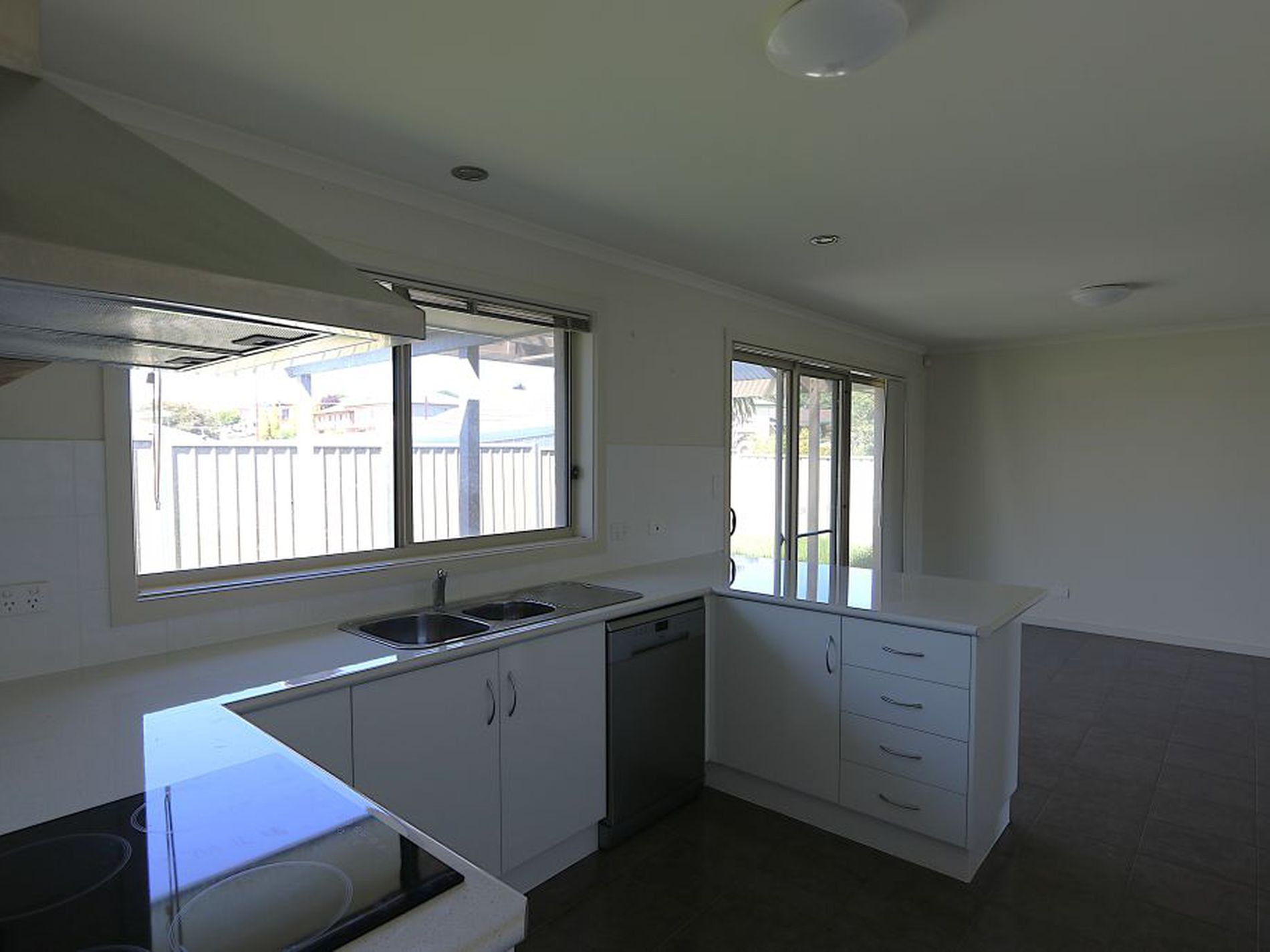 * Kitchen with electric cooktop, under bench oven and dishwasher