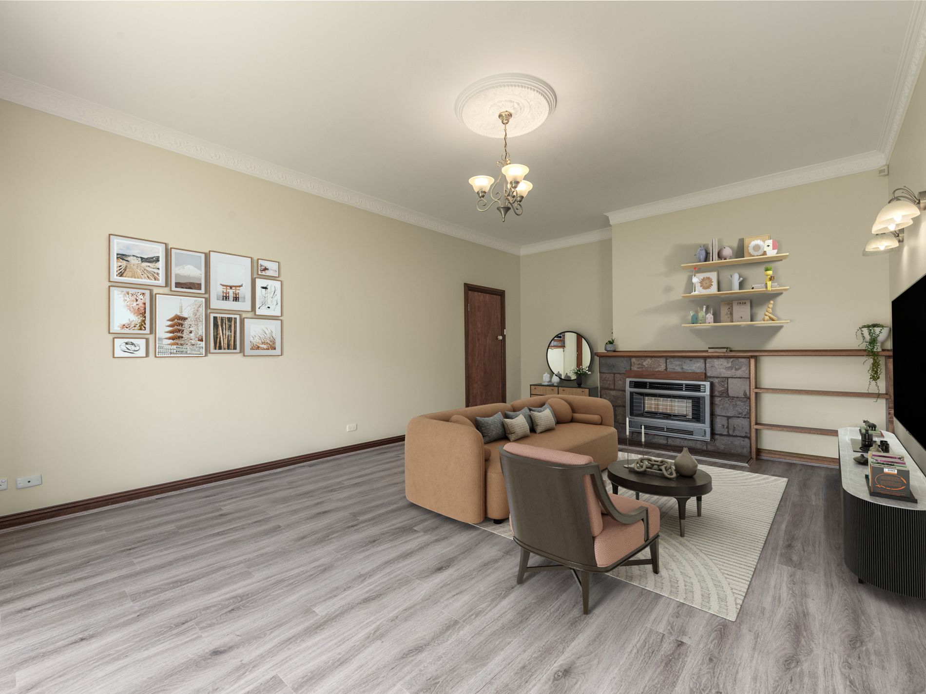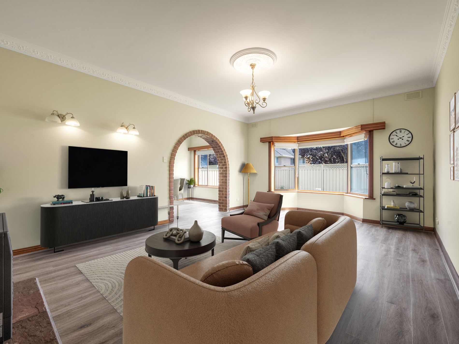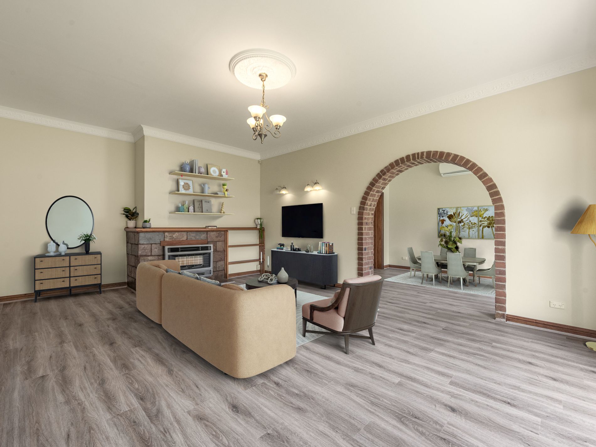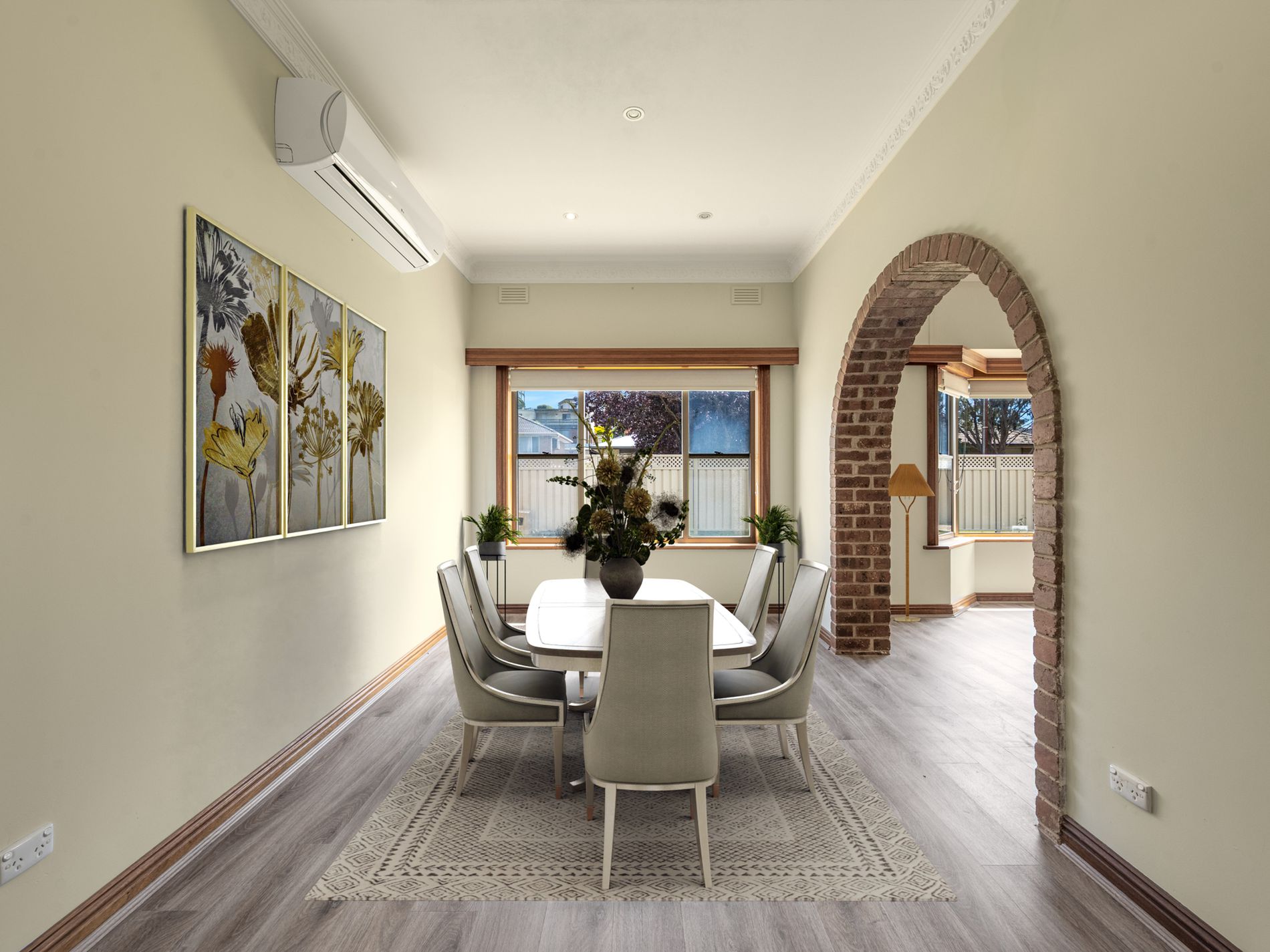 • Semi separate dining room, with ornate cornices and a split system h/c unit