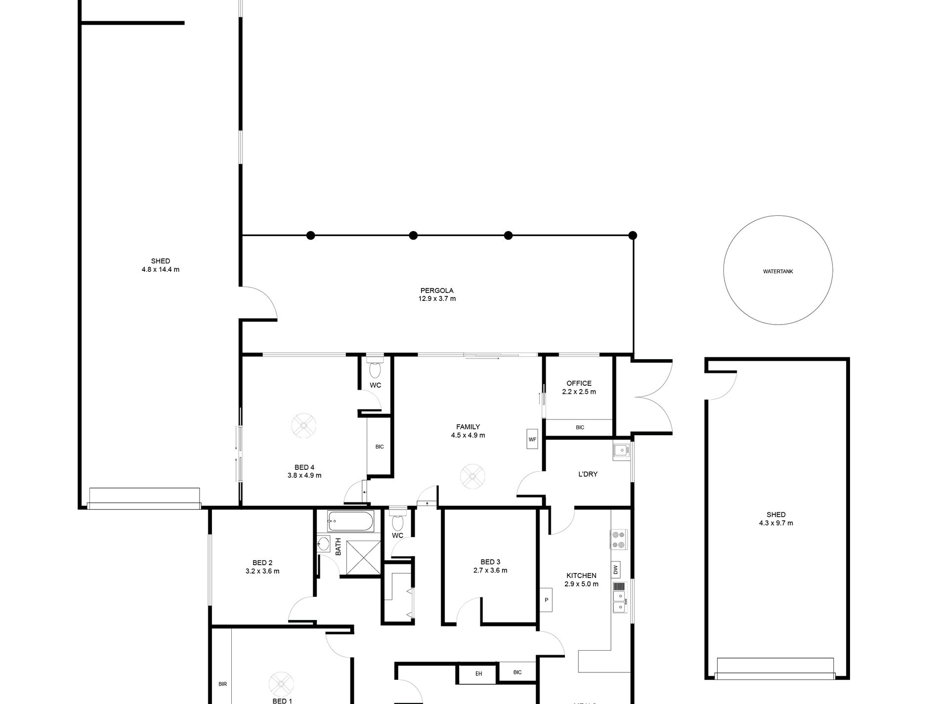 • Paved outdoor undercover entertaining, house plumbed with rainwater