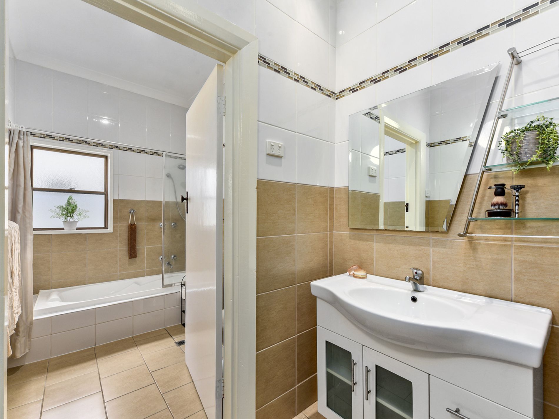 • Renovated main bathroom, tiled to the ceiling with separate vanity area
