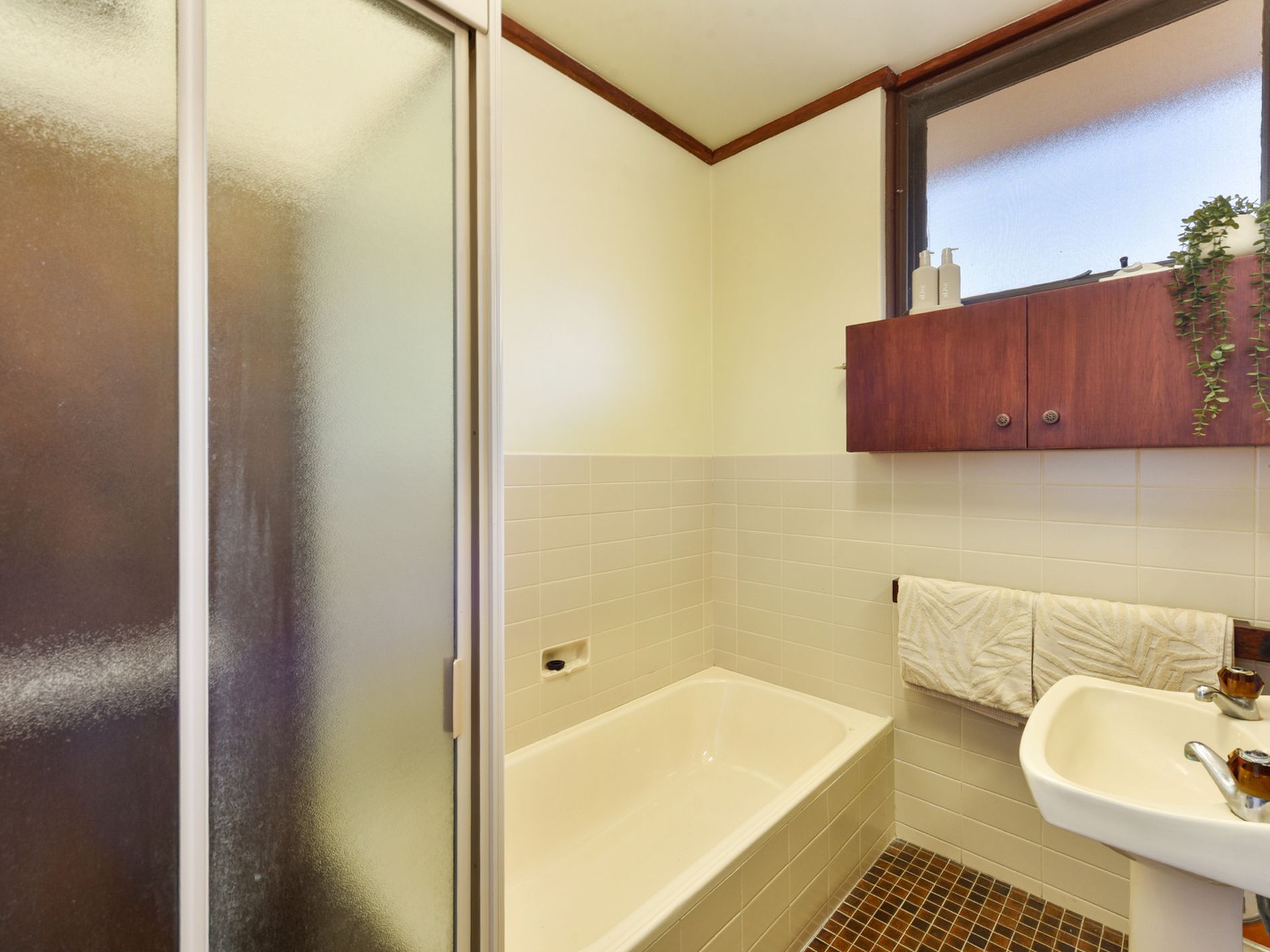 • Bathroom with separate shower/bath/toilet and pedestal vanity