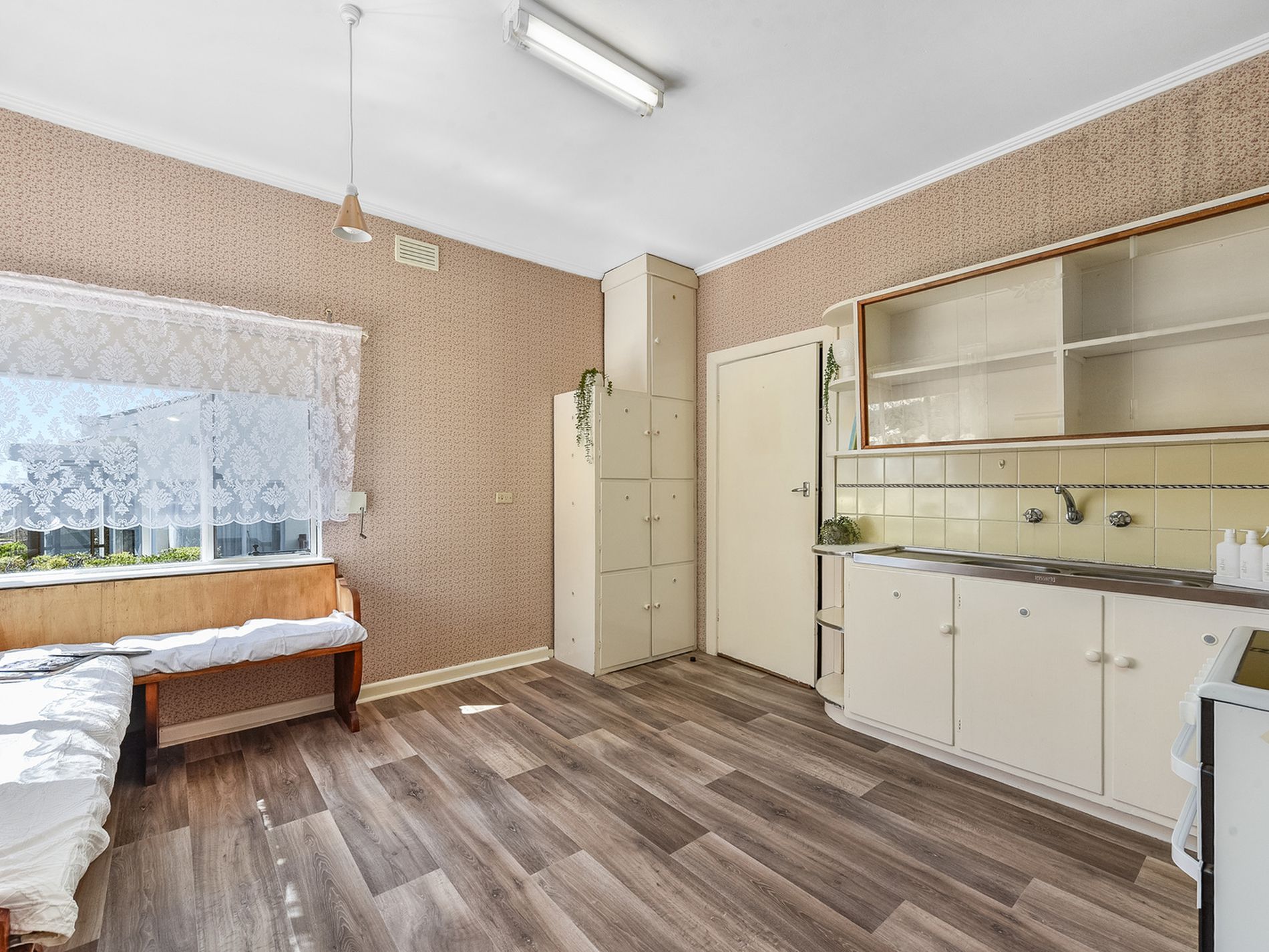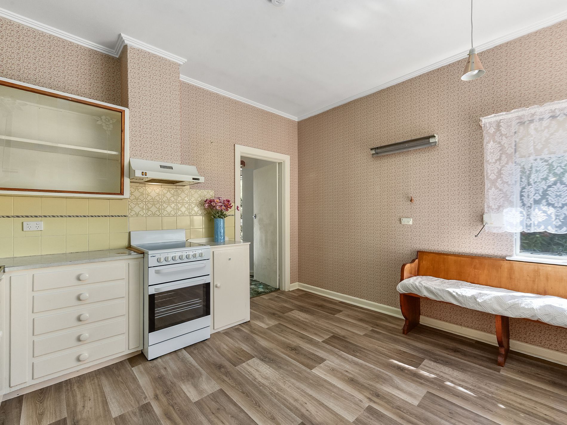 • North facing retro style kitchen with bench seat under the windows perfect for a morning cuppa