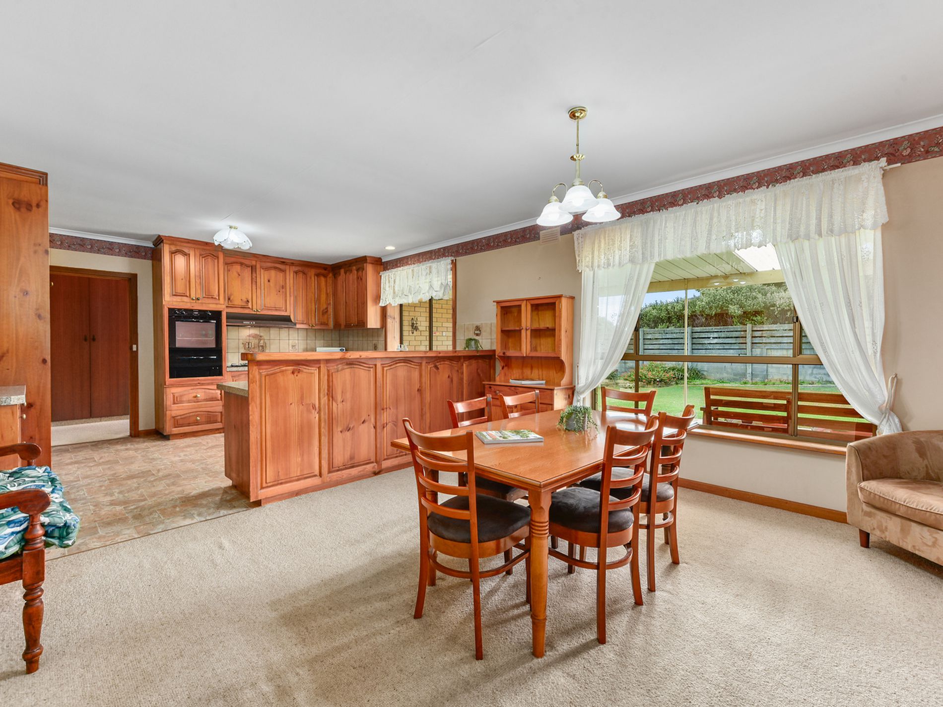 • Open plan kitchen/dine with gas cooktop, electric wall oven, dishwasher and walk in pantry